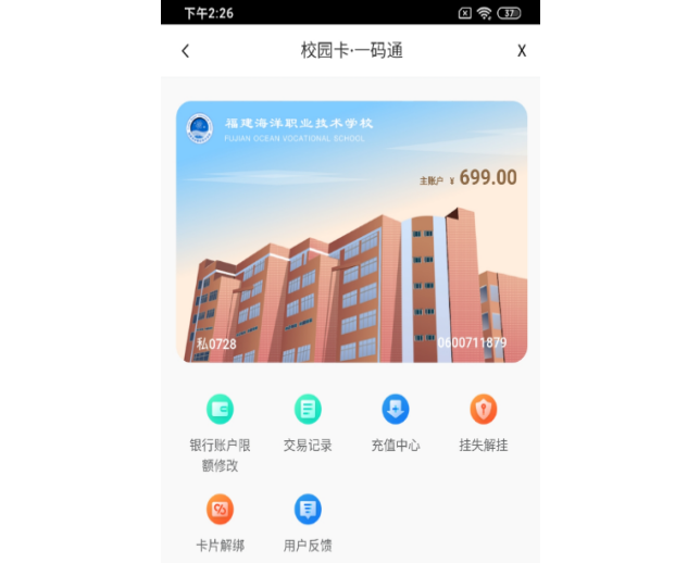 支持为本人和他人在线充值,接入银行电子钱包,钱包余额不足时支持直接扣除所绑定银行卡余额,学生使用更加便捷。