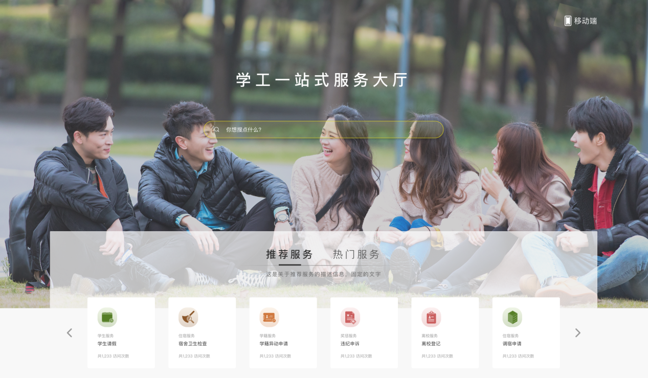 以服务为导向,充分发挥智慧校园的整体服务和管理优势,协助学校规范学生工作管理部门的工作流程,实现在线业务处理,为学生处老师、各院系老师和学生等提供统一的网上办公服务平台,实现各部门间有效的信息共享和协同工作。...