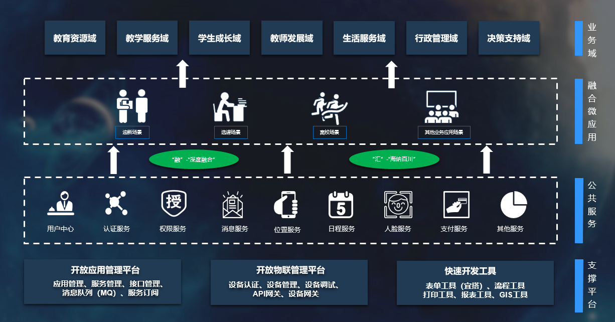 为景德镇陶瓷大学建成集高效、弹性扩展、安全可靠的业务中台,实现应用开发与运行、消息服务、身份管理、权限管理等公共功能的统一运行管理和复用,为学校信息化可持续发展营造良好支撑环境。...