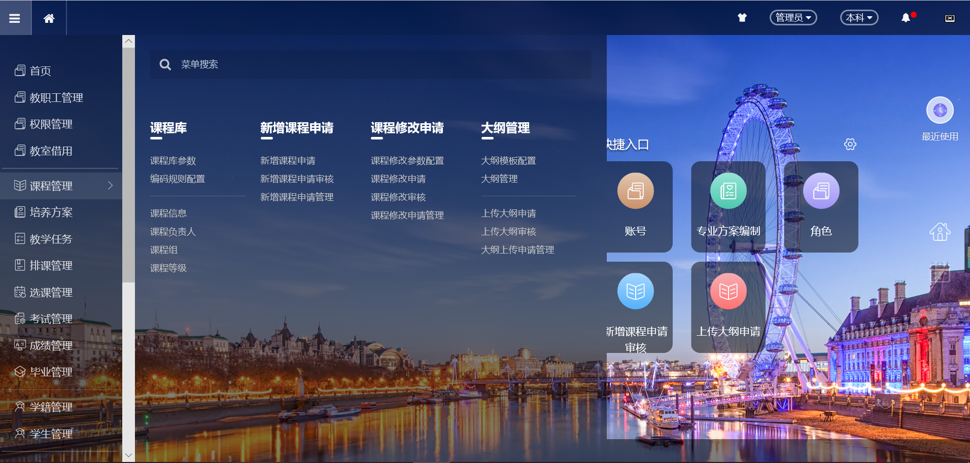 教务管理系统主要包括培养方案、开课计划、教学任务、排课管理、选课管理、考试管理、成绩管理、毕业审核、学位审核、学籍管理、教职工管理等教学运行主线功能。教务管理系统是各级教学管理工作者的信息化管理平台,是服务于广大师生的教学信息平台,以信息化为手段,公开教学资源,提供教学资讯,保障教学运行,深化教学服务,为达到各校教学运行管理规范化、精细化、信息化服务。