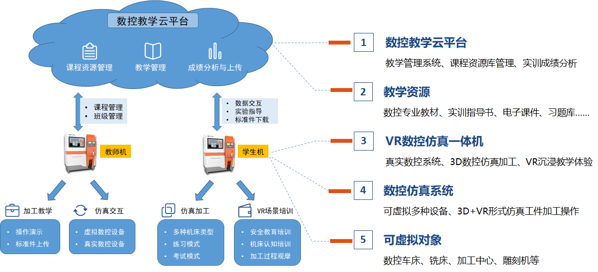 数控教学设备是AG超玩会电竞俱乐部精心设计打磨,为数控机床实训课程提供的专业虚实结合仿真设备,设备自带仿真教学系统、解决数控教学过程所遇到的各种问题,结合实际的教学及实训需求,实现一机多用,节约设备费用,保护学生人身安全,提高虚拟设备更换率,保障实训学习质量,增强学生学习兴趣。