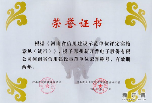 我公司被授予“河南省信用建设示范单位”荣誉称号...