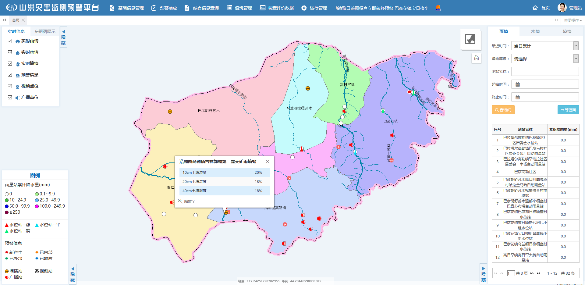 在易于发生洪涝灾害的区域建立以监测、通信、预报、预警等非工程性措施为主并与工程措施相结合的防灾减灾体系,减少群死群伤事件和财产损失。山洪灾害监测预警平台集信息采集、传输、分析和预警等多功能于一体,及时准确地上传下达预警信息,从而使可能受灾区域能够及时采取措施。