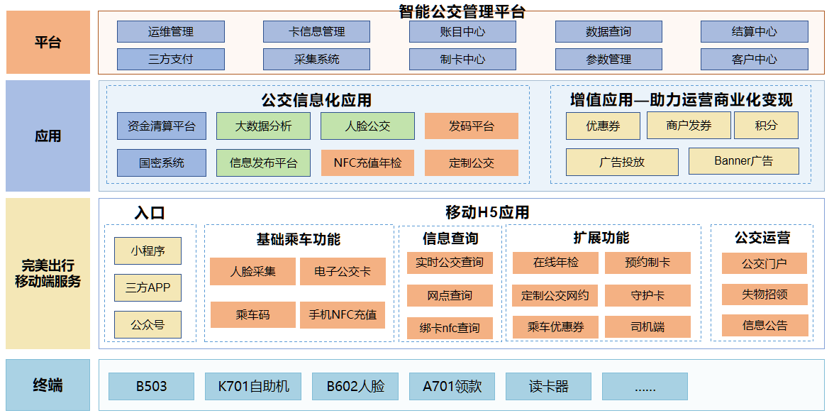 支持实体卡、二维码以及人脸识别支付,对接交通部互联互通、微信/支付宝二维码等主流支付渠道,方便乘车支付。