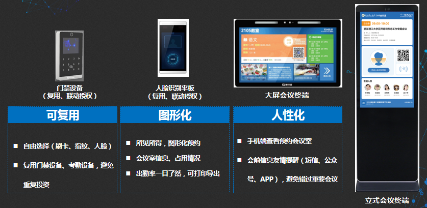 复用门禁设备、考勤设备,避免重复投资,且可自由选择刷卡、指纹和人脸等模式,满足不同用户需求。