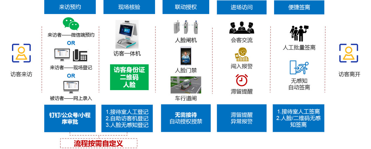 涵盖自助预约、VIP访客特邀、批量访客导入等多种预约模式,流程灵活可控,满足企业不同场景需求。