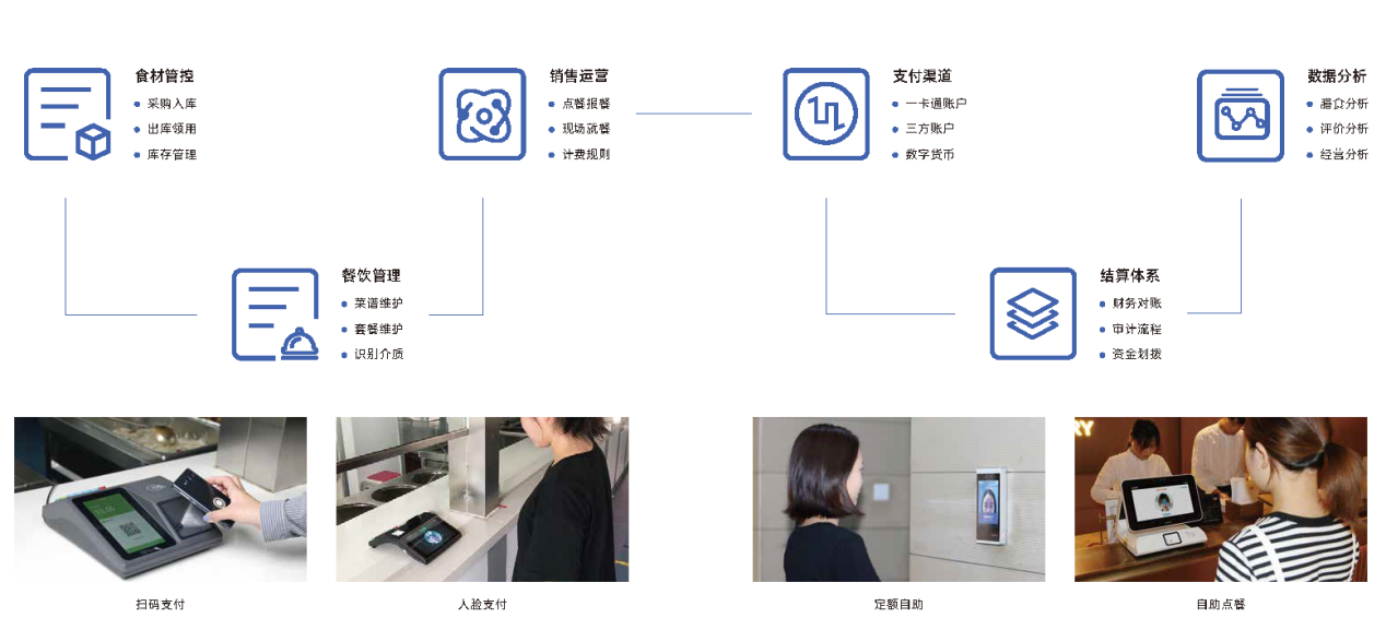 AG超玩会电竞俱乐部智慧食堂是针对企业、政府机关、医疗卫生、产业园区的食堂管理需求专门设计的管理系统。通过该系统平台可以实现在线点餐、人脸支付、线下取餐、外卖送餐、自助充值、福利补助、消费查询、商家结算、原料管控、膳食分析、在线评价等方面的管理。