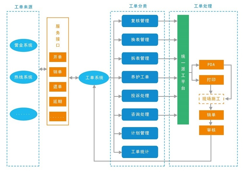 实现多渠道、多来源数据的统一接入,结合BPM工作流引擎平台,实现多业务流程、多业务表单的制定,规范业务管理流程,统一巡检业务管理模式